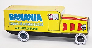 Lastwagen, Banania, Made in Italy, Blech lithogr., 30 cm, Schiebewagen, untere Tür zum öffnen, bespielt