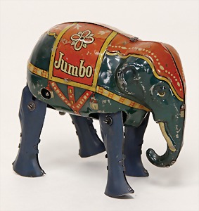 Jumbo, Elefant, Blech lithogr., Vorkrieg, leicht bespielt, Uhrwerk intakt, 1 Druckstelle an einem Bein