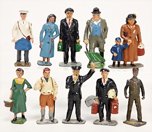 10 Teile, Metall-Guss-Figuren, Eisenbahn, 6 cm, guter Zust.