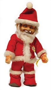 50er Jahre, Santa Claus, mit Knopf, Schild u. Fahne, Nr. 8018,08, Filzkleidung in sehr gutem Zust., sowie Mohair, ca. 20 cm, unberührt