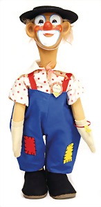 "Clownie" 50er Jahre, Clownfigur, mit Knopf, Schild u. Fahne, Nr. 8743,00, sehr schöner unberührter Zust., farbl. Abriebstellen an der Wange, sehr guter Zust., ca. 60 cm
