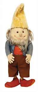 Zwerg Puck, ca. 30 cm, hergestellt zw. 1914 – 1943, mit Knopf, gelbes Mohair, Mütze, Filzkleidung sowie Schuhe in sehr schönem Zust., leichte Gesichtsbemalung, minim. ausgeblichen, sonst schöner Zust.