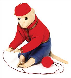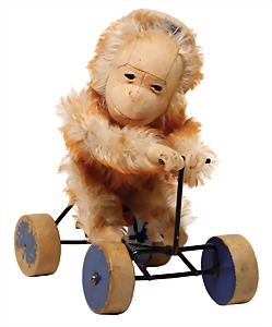 Record Orang-Utan, Nr. 320, 1929 - 1933, Mohair, Filzgesicht, Glasaugen, 18 cm, mit Knopf, Filz bis auf minim. Stellen im Gesicht sowie kl. Stelle an einer Hand gut, Mohair gut, Farbe an den Rädern abgegriffen, selten, Stimme defekt