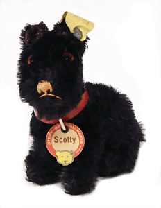 Scotty, ab 1934, schwarz, sitzend, kompl., Nr. 3308, mit Halsband u. Schild, sehr guter Zust.