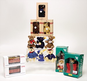 Konv. Werbe-Teddy´s, Steiff-Märklin, Jubiläumsfahrt Teil 1 u. 2, 2 Weihnachts-Bären, 3 Club-Bären, 1997, 1999 u. 2000, 2 kl. Römer-Teddy´s, 10 cm, Lufthansa-Teddy, 10 cm, 1x Teddy-Halbfigur