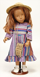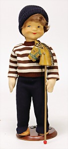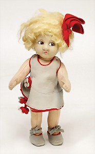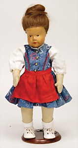 Filzpuppe, Typ Lenci, seitl. blickende, gemalte Augen, Woll-Perücke, bewegl. Arme und Beine, 25 cm, Filz-Kleidung