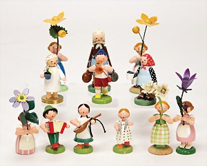 Konv. versch. Figuren, darunter Blumenkinder, 1x ohne Blüte, 1 Engel, 4x musizierend, 2 Bäuerinnen