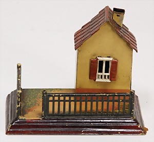 Bahnwärterhäuschen, altes Märklin-Zeichen, Grundplatte 12,5 x 8,5 cm, unberührter Dachbodenfund, mit kl. Spielspuren