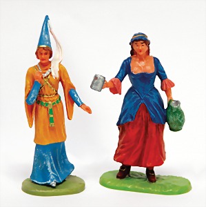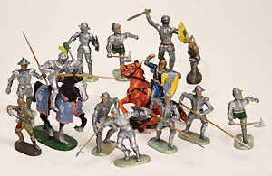Gr. Konv. Ritter und Normannen, kl. Serie, 4 cm, kämpfend und zu Pferd, 2x Burgfräulein, Prinz Eisenherz, Ritter Gawain, 1 Landsknecht u.a., bitte besichtigen