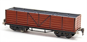 Spur 1, 2932, offener amerikanischer Güter-Wagen, 4-achsig, braun, mit Bremsrad, 28,5 cm, guter Zust.