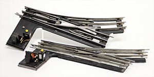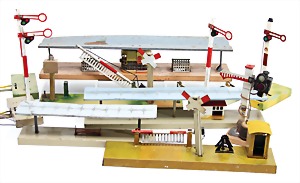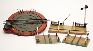 Konv. Spur 0, 2 kl. Schranken, Drehscheibe für Elektrobetrieb, Schranke variabel, Spur 0 und 1, mit Signal, englische Ausführung, bespielt-gut