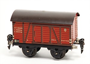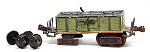 Uralt, Hochbordwagen, mit 2 Türen, Blech handlackiert, 18 cm, bespielt, altersbed. Lackfehler, 2 Achsen vorhanden