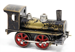 Spur 1, Schlepptenderlok B, ohne Tender, wohl Messing Handmuster, Uhrwerk intakt, klemmt jedoch ein wenig, Lackfehler, bitte besichtigen