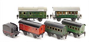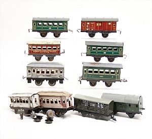Konv. Güter- und Personenwagen, 8-tlg., Spur 0, 1x Spur 1, Märklin, Karl Bub, HWN, bespielt- stärker bespielt