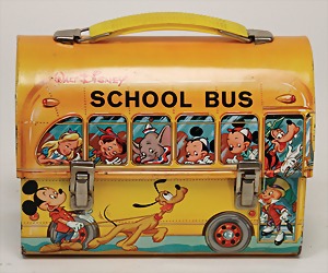 Lunch-Box, Blech lithogr., mit Walt Disney Figuren, bespielter Zust. H: 16 cm, L: 22 cm