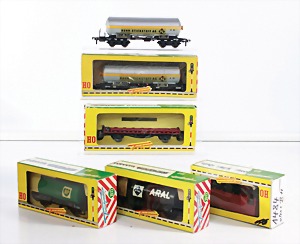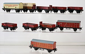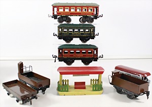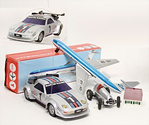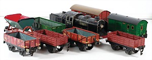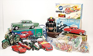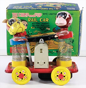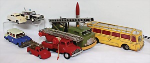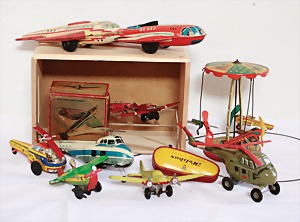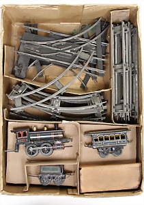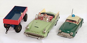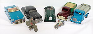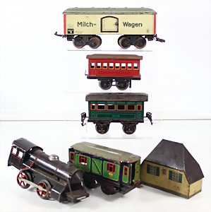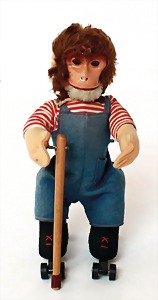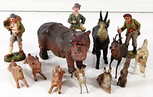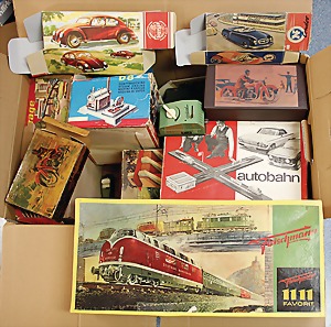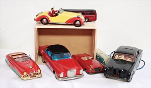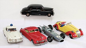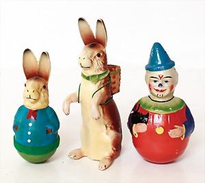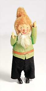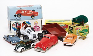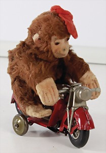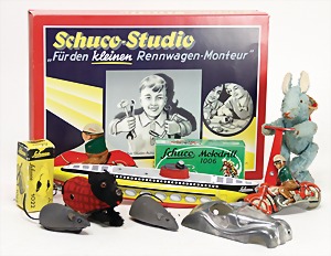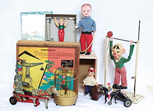 Konv. 3 Celluloid-Puppen, 1x gem. Germany, H: 16 cm, braune gemalte Augen, bewegl. Arme und Beine, modell. Schuhe und Strümpfe, 1x Celluloid-Puppe, bespielt, SoR, Nackenmarkierung 15, 1 Hochstuhl, H: 20 cm, Holz, mit Celluloid-Puppe, bewegl. Arme und Beine, ausmodell. Schuhe und Strümpfe, Nase weggebrochen, 1 Biege-Figur, Ente, Lenci?, 12 cm, 1 Steiff Replica-Bär, weiß, 16 cm, mit Knopf und Fahne