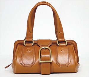 Handtasche, cognacfarbenes Kalbsleder, 2 Schultertrageriemen, mit mattgoldenen massiven Ringen, magnetischer Klappverschluss mit goldfarbener Schnalle, Céline Gravur, 1 Fülltasche mit Reißverschluss, Innenstoff aus Polyester, 1 Seitentasche mit Reißverschluss innen, Leder-Emplem innen mit Céline Prägung, ID-Nr. CE00-34 made in italy, B: 20 cm, H: 20 cm, T: 18 cm, 4 Füße mit Céline Gravur, Orig.-Staubbeutel, neuw. Zust.