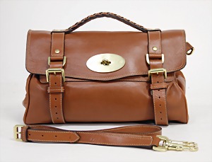Handtasche, cognacfarbenes weiches Kalbsleder, 1 abnehmbarer größenverstellbarer Leder-Schultertrageriemen, kurzer geflochtener Tragehenkel, magnetischer Schnallen-Verschluss, goldfarbene Plakette mit Drehverschluss mittig, Innenfutter aus braunem Wildleder, 1 Fülltasche, 1 Seitentasche mit Reißverschluss innen mit Leder-Emblem und Mulberry Prägung, zusätzl. kl. goldfarbene Plakette mit ID-Nr. 5044767, B: 32 cm, H: 22 cm, T: 16 cm, passender Staubbeutel, sehr schöner neuw. Zust.