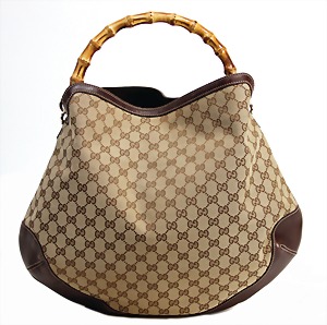 Handtasche, Bamboo, beiger Stoff mit Guccissima Monogramm, 1 Fülltasche, verstärkter Boden mit dunkelbraunem Leder-Einsatz, Bamboo Holz-Tragehenkel, B: 54 cm, H: 48 cm, mit Orig.-Staubbeutel