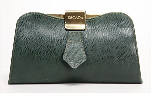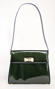 Handtasche, grünes Lackleder, goldfarbenes Escada-Emblem mittig, 1 Schultertrageriemen, Magnetverschluss, eingesetztes Wildleder, 2 Fülltaschen, 1 Seitentasche mit Reißverschluss, B: 28 cm, H: 25 cm, T: 8 cm, Orig.-Staubbeutel, bis auf minim. Stellen im sehr guten Zust.