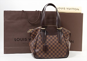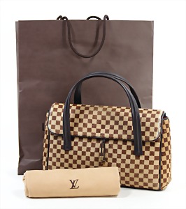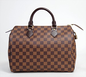 Handtasche, Modell: Speedy 30 Monogram Damier Ebene, Data-Code: SP*0*9, mit Schloss Nr. 445 und 2 Schlüsseln, 1 Fülltasche, 1 Seitentasche innen, H: 21 cm, B: 30 cm, T: 17 cm, 2 braune Tragehenkel, mit Orig.-Rechnung und Orig.-Staubbeutel, neuw. Zust.
