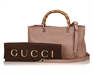 Medium Bamboo Shopper, Nappaleder, altrosé, goldfarbener Gucci Schriftzug mittig, gold/silberfarbene Beschläge, Bamboo-Holz Tragehenkel, 5 Füße, 2 Fülltaschen mit Magnetverschluss, 1 Seitentasche mit Reißverschluss, Leder Emblem mit Gucci Prägung und ID-Nr., 1 Zusatzfach mittig mit Reißverschluss, B: 35 cm, H: 20 cm, T: 14 cm, größenverstellbarer Schultertrageriemen, Staubbeutel, sehr schöner Zust.