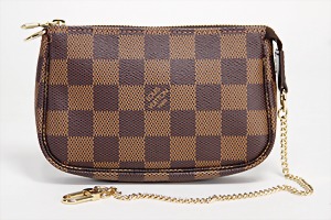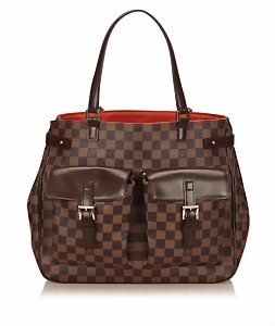 Handtasche, Modell: Uzes Damier Ebene, 2 aufgesetzte Außentaschen mit Schnallen-Verschluss, 1 Fülltasche, 2 Seitentaschen, 1x mit Reißverschluss, Data-Code: MB*0*3, goldfarbene Beschläge, 2 Schultertrageriemen, B: 40 cm, H: 31 cm, T: 10 cm, neuw. Zust.