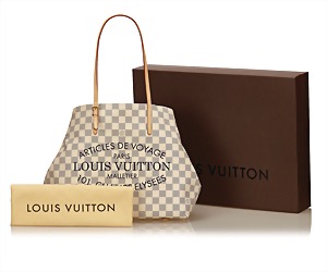 Handtasche, Modell: Cabas Adventure Damier Azur MM, 2 größenverstellbare Schultertrageriemen, jeweils 2 Druckknöpfe seitl. zum Vergrößern/Verkleinern, 4 goldfarbene Füße, Aufdruck auf der Frontseite: Articles de Voyage Paris Louis Vuitton, 1 Fülltasche mit Schnapp-Verschluss, beiger Innenstoff, 3 Seitentaschen, davon 1x mit Reißverschluss, Datacode: MI*1*4, B: ca. 34 cm, H: 29 cm, T: 18 cm, mit Orig.-Staubbeutel und Orig.-Kart., neuw. Zust., limitierte Edition