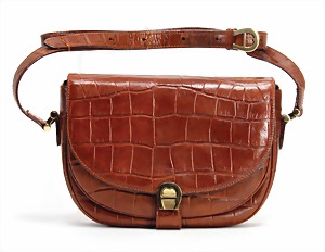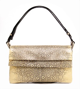Handtasche, Reptilienleder, 1 Schultertrageriemen, 2 Fülltaschen, jeweils mit Magnetverschluss, schwarzer Innenstoff, 1 Seitentasche innen, Leder-Emblem innen mit Jil Sander Prägung, H. ohne Henkel: 16 cm, B: 27 cm, T: 5,5 cm, sehr guter Zust.