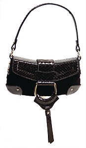 Handtasche, brauner Stoff und Reptilien-Leder, 1 Tragehenkel, Überschlag mit Magnetverschluss, 1 Fülltasche, 1 Seitentasche innen mit Leder-Emblem und D&G Prägung, Dolce & Gabbana Gravur auf dem Verschluss, H. ohne Henkel: 10,5 cm, B: 21,5 cm, T: ca. 3 cm, sehr guter Zust.