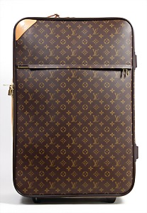 Trolley, Monogram Canvas, Data-Code: SP*0*5, Schloss ohne Schlüssel, Griff mit Ledereinsatz, doppelter Reißverschluss, 1 Außentasche mit Reißverschluss, mit Adress-Anhänger, 2 Innentaschen, zusätzl. Textil-Beutel, Data-Code: WL*0*5, B: 45 cm, H: 67 cm, T: 25 cm, neuw. Zust.