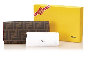 Portemonnaie, Fendi Monogramm, Druckknopf-Verschluss, pinker Innenstoff, 1 Münzgeldfach, 10 Kartenfächer, 2 Geheimfächer, 2 Scheinfächer, ID-Nr. 8M0251-ZM5-119-2401, made in Italy, kl. Gebrauchsspuren, mit Orig.-Kart. und Staubbeutel und Fendi Unterlagen