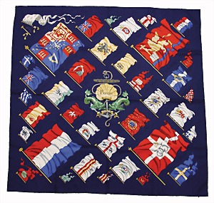 Seidenhalstuch, 90x90 cm, Pavois Hermès Paris, Flaggenmuster, handvernähter Rand, guter Zust.