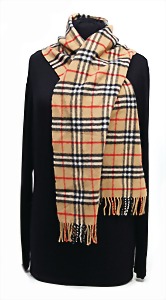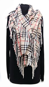 Schal, Cashmere Wollgemisch, mit Fransen, Checkmuster, L: 1,45 m., mit Pflege-Etikett, guter Zust.