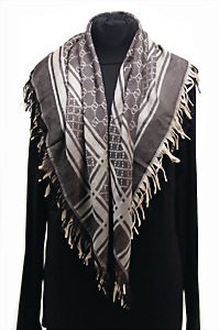 Schal, braun/beige mit Guccissima Muster und Fransen, mit Pflege-Etikett, 70% Wool, 30% Silk, ca. 80x80 cm, sehr guter Zust.