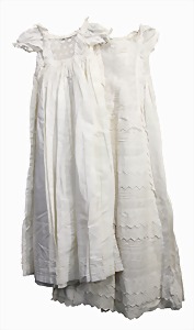Konv. 2-Tlg, 1 Kinder-Taufkleid mit Spitzeneinsatz, 1 Baby-Taufkleid, mit Spitzeneinsatz auf Frontseite, schönes Konv.