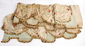 Manegen-Bordüre, um 1900, 3,64 m., mit Quasten-Einsatz, H: 40 cm, Hakenverschlüsse auf Rückseite erneuert, Wasserflecken auf der Rückseite, sonst gut, ausgefallener Dekorationsartikel