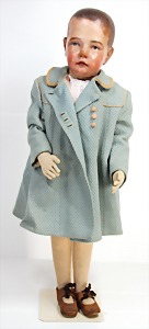 Papiermaché Junge, Vollkopf, fein ausmodell. Gesichtszüge, blaue gemalte Augen, geschl. Mund, Stoff-Torso, Filz-Füße und -Arme, H: 82 cm