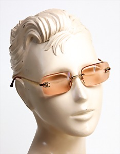 Damen-Brille, goldfarbenes Gestell, made in italy, Modell-Nr. 4017-D, typisches CC-Logo auf den Brillengläsern mit Strassteinen, rosa getönte Gläser mit Sehstärke
