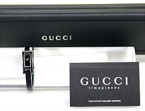 Uhr, schwarzes Lackleder-Armband, im Orig.-Etui, mit Gucci-Unterlagen, Gucci Time Pieces 3900L swiss made, bis auf kl. Stellen in gutem Zust.