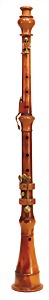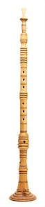 Schalmei, aus Palmenholz, unsign., ca. 30 cm lang, ägyptische Volks-Schalmei, 7 vorderständige Grifflöcher, 1 Daumenloch, 7 Stimmlöcher, Zust. 1, ohne Mechanik #29#