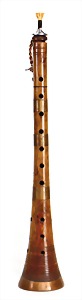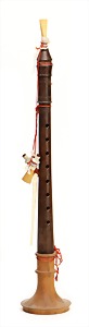 Schalmei, aus hellem Holz, dunkelrot/braun gebeizt, türkische Volksschalmei, mit 7 Grifflöchern u. Daumenloch, 1950-1985, 49,5 cm, Zust. 1 #447#
