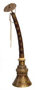 Schalmei, Algheita aus Nigeria, unsign., Holz u. Leder, lederüberzogener Holzkörper mit glockenförmigem Schallstück, 4 Grifflöcher, um 1900, Zust. 1 #244#