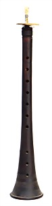 Zorna, aus Buchsbaum, unsign., schwarz gebeizt, 37 cm lang, marokkanische Volks-Schalmei, mit 7 Grifflöchern, 1 Daumenloch, um 1970, Zust. 1, keine Mechanik #317#