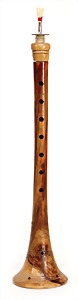 Sukra (Zokra), unsign., aus Olivenholz, 34 cm, 7 vorderständige Grifflöcher, 1 Daumenloch, oberer Teil mit drehbarer Gabel, sehr schön gemasert, 1950-2000, Zust. 1 #707#