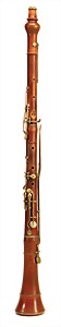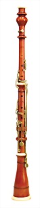 Schalmei, aus Rosenholz, unsign., 31 cm lang, franz. Volks-Schalmei, mit 6 Grifflöchern, 1 Klappe, Ring am Schallbecher fehlt, um ca. 1880, Zust. 2 #582#