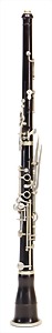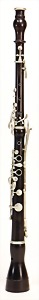 Oboe, mit Klarinettenumbau, aus Ebenholz, schwarz, Barret-System, Oboe mit Klarinettenanteil, 3-tlg., mit einfachem Rohr auf Kunststoff-Mundstück, Mischung von Oboe u. Klarinette, mit Barret-System 5, um 1870, Holz Zust. 2-3, Mechanik Zust. 3 #400#