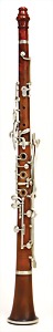 Oboe aus Kokosholz/event. Rosenholz, Daumenplatte, Ringsystem, Barret, 3-tlg., 14 Neusilberklappen, Riss im Schallbecher repariert, um ca. 1880, 54,4 cm, Holz Zust. 2, Mechanik Zust. 1 #325#