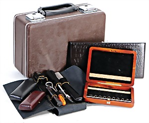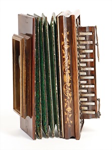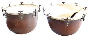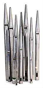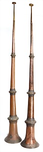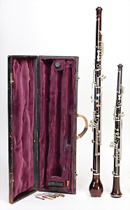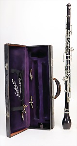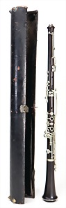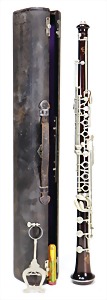 2 Teile, Klarinette in a, aus Grenadill, Seriennr. 7963 auf Schallbecher, 1850-1900, 15 Klappen, 2 Doppelringe, Gesamtlänge 70 cm, von Birne bis Fuß 62,8 cm, Holz Zust. 2-3, Mechanik Zust. 2-3, Klarinette in b, aus Grenadill, Signatur auf allen Teilen, Seriennr. 8008 auf Schallbecher, 15 Klappen, 2 Doppelringe, Gesamtlänge 66,5 cm, von Birne bis Fuß 59,6 cm, 1850-1900, Holz Zust. 3, Mechanik Zust. 3 #669 670#