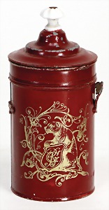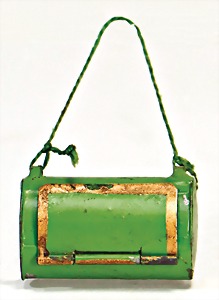 kl. Puppenstuben-Botanisiertrommel, Blech, handlackiert, um 1900, 4 cm, für Puppenstubenpuppe o. kl. Puppe